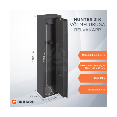 | Cita informācija | Atbilstoši Latvijas Republikas prasībām seifs ir piemērots šaujamieroču glabāšanai. |