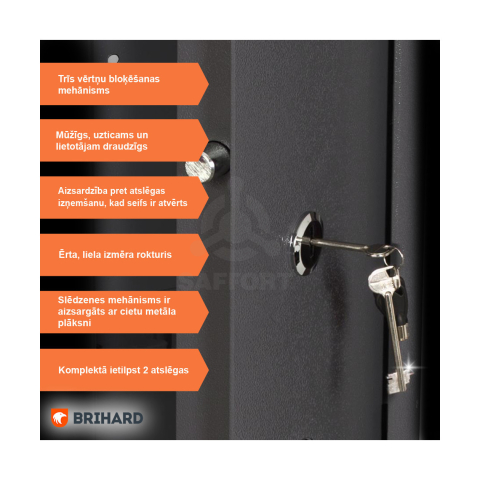 | Cita informācija | Atbilstoši Latvijas Republikas prasībām seifs ir piemērots šaujamieroču glabāšanai. |