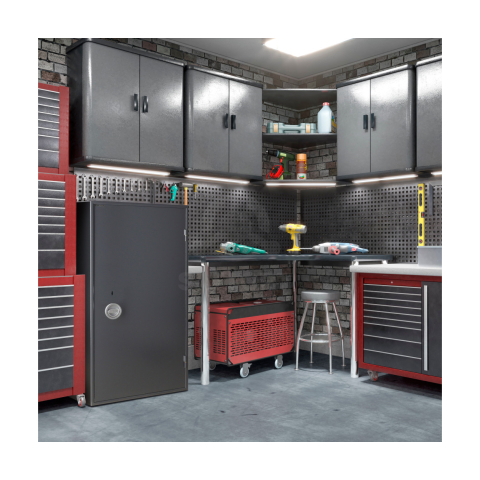 Brihard Hunter Premium sērijas sertificēti (drošības klase: S1 atbilstoši EN 14450 standartam) ieroču seifi munīcijas un garo ieroču glabāšanai: gan medībām, gan sportam. Brihard Hunter Premium seifi ir īpaši ar to, ka ir iespēja pielāgot ieroču uzglabāšanu atbilstoši savām individuālajām vajadzībām. Ieroču turētāji ir magnētiski, tāpēc iespējams regulēt gan to augstumu, gan novietojumu – tos var piestiprināt pie aizmugurējām vai sānu sienām dažādos augstumos. Šis drošais modelis ir paredzēts līdz 18 ieročiem. Šautenes maksimālais garums ir 1244 mm. Modeļu komplekts: Magnētiskie ieroču turētāji - 4gab (3+3+2+2). Ieroču turētāji uz sliedēm - 2gab (4+4). Regulējams dziļums - iespēja tos nostiprināt 2 rindās. Seifa iekšpusē vidū ir starpsiena, kas ļauj mainīt plauktu un ieroču turētāju izvietojumu. 4 regulējama augstuma plaukti, kurus var pārvietot uz seifa labo vai kreiso pusi. Seifa kreisajā pusē atrodas iekšējais slēdzams nodalījums ar augstumu 195 mm ar cilindra slēdzeni (2 atslēgas). Durvju iekšpusē ir 11 āķi atslēgu, binokļa, citu lietu pakarināšanai un 1 piederumu turētājs. Durvju iekšpusē ir 4 regulējama augstuma pakarināmās kastes, kas iebūvētas durvju konstrukcijā, tāpēc neaizņem papildu vietu seifa iekšpusē. Seifa grīdā (apakšā) ir putuplasta paklājiņš, kas pasargā ieročus no skrāpējumiem. Metāla rokturis izvirzīts 12 mm. Ārējās eņģes - durvju atvēršanas leņķis 180°. |